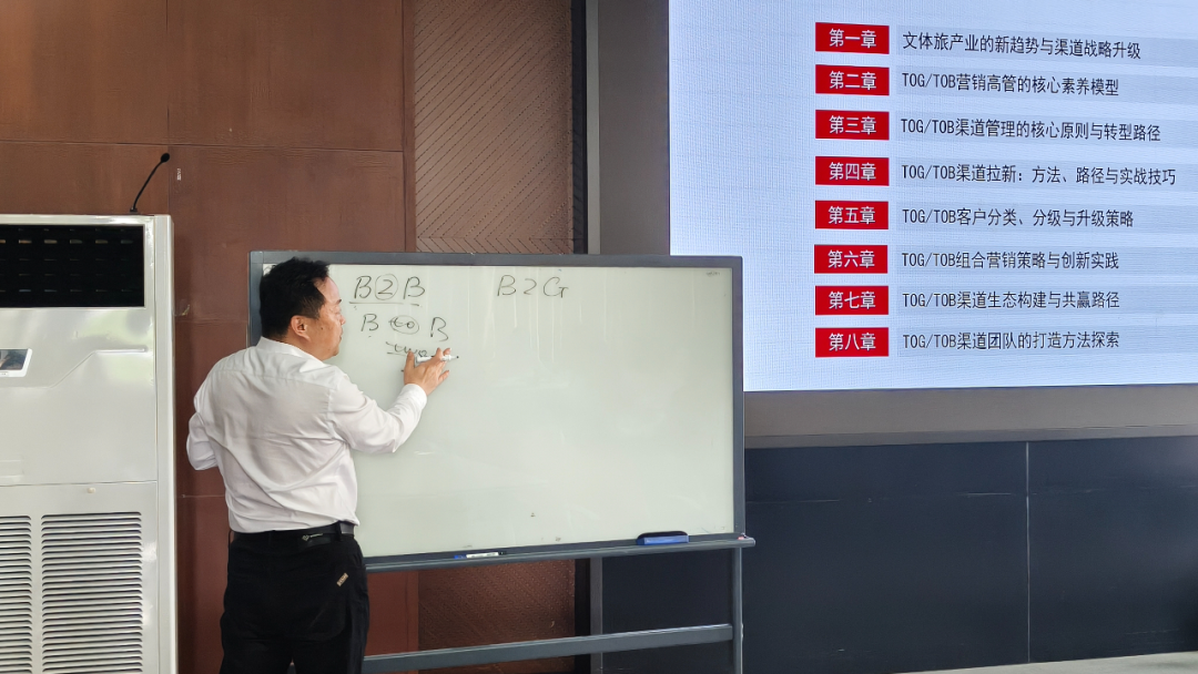 整场课程立足企业实战、贴合产业趋势,既有体系化的战略框架,又有可直接复用的操作方法。本次课程以大丰集团转型实践为蓝本,打通战略、渠道、客户、生态、团队五大核心环节,帮助参训者建立 TOG/TOB 渠道运营的完整思维,为企业实现渠道战略升级、构建产业生态合作、实现高质量可持续发展提供了清晰方向与落地路径,也为文体旅行业营销创新注入新动能。