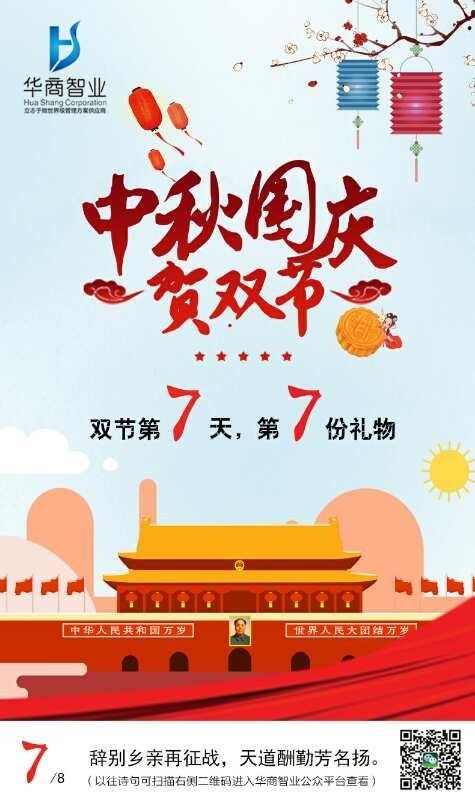 “辞别乡亲再征战,天道酬勤芳名扬”今天是国庆遇上中秋的第七天,华商智业集团在此为您献上八首诗中的第七首诗。
